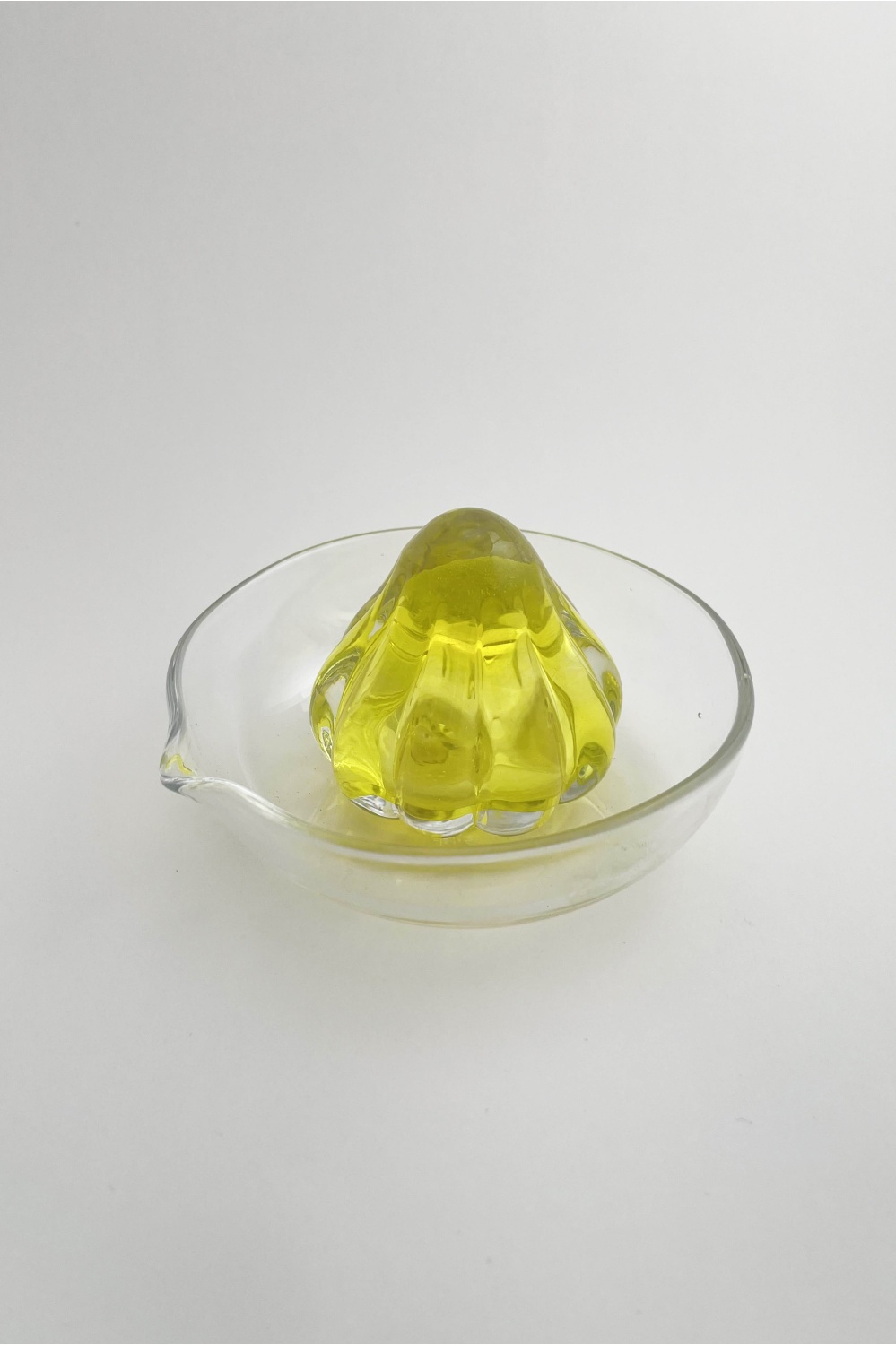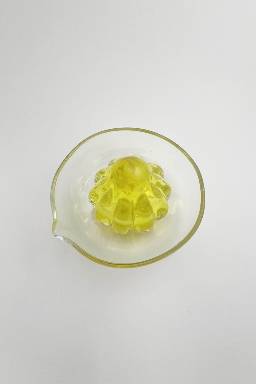 Käsitsi puhutud klaasist sidrunipress, mille mänguline disain teeb sellest köögis nii kauni kui ka praktilise abivahendi.