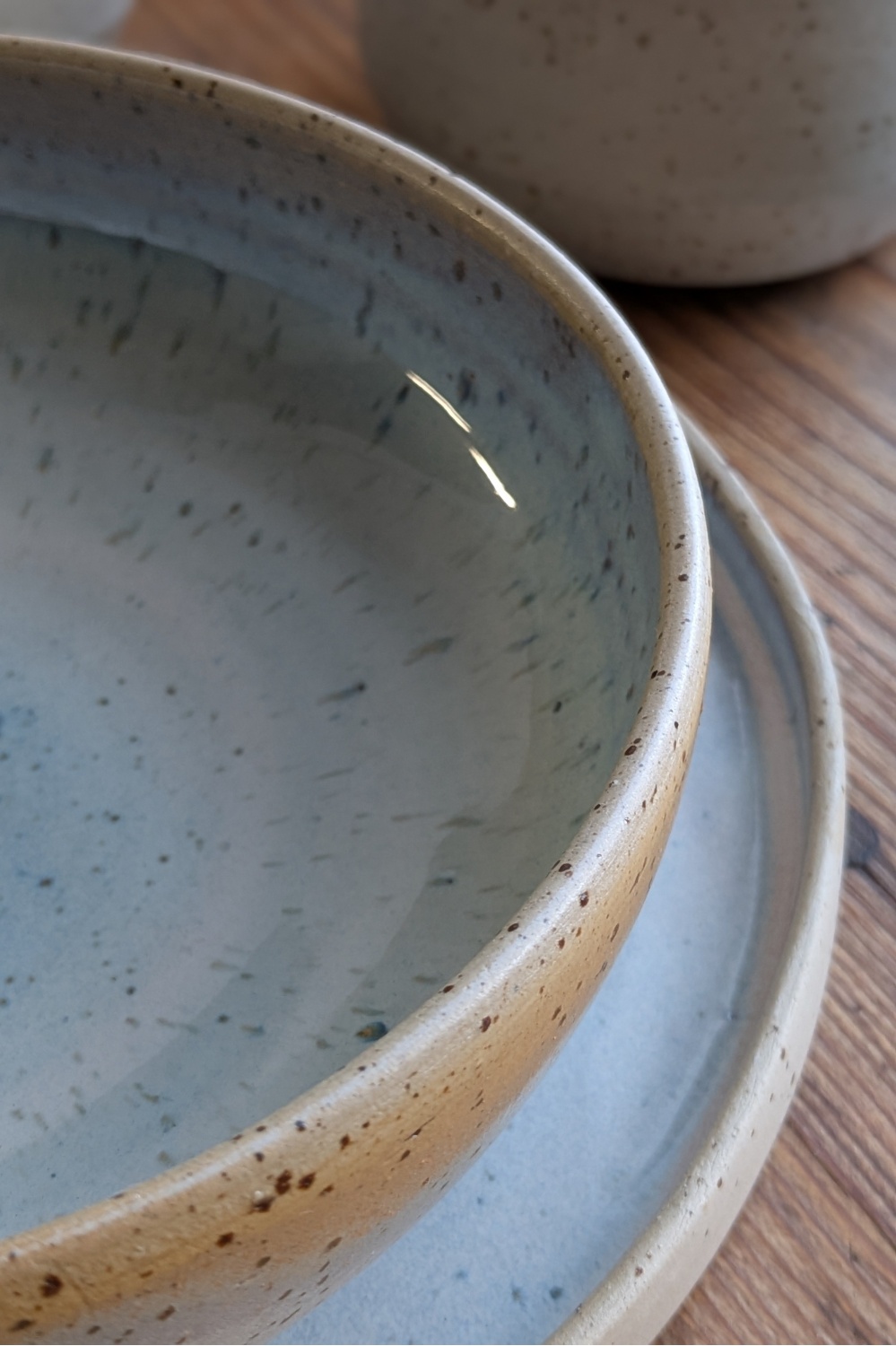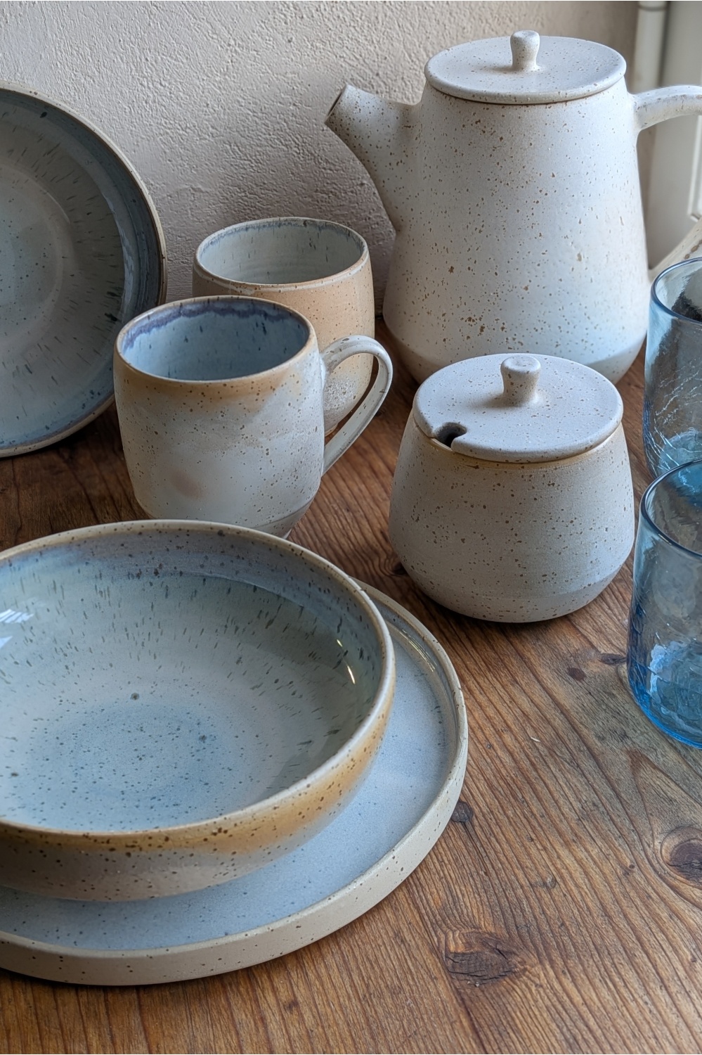 Valmistame kollektsiooni tooteid (taldrikud, kausid, tassid, kannud, suhkru- ja võitoos) tellimusel. Kõrvale sobivad hästi meie klaasikojas valminud käsitsi puhutud veesinised joogiklaasid.