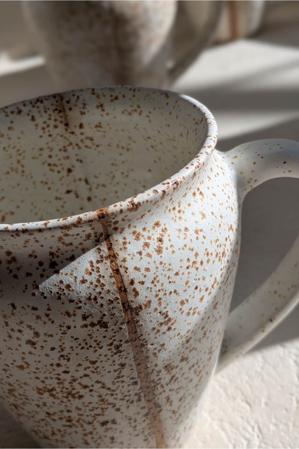 Glasuuritud siidmati naturaalvalge glasuuriga. Tass mahutab ca 350ml.